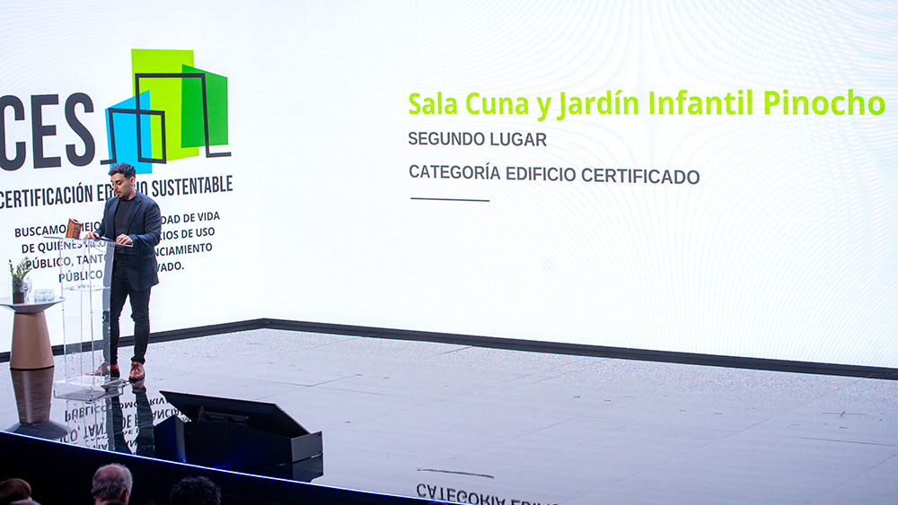 Este es el caso del Jardín Infantil “Pinocho” de Temuco, de la región de La Araucanía, que recibió en manos del arquitecto Felipe Barros el segundo lugar en la categoría, Edificio Certificado. El proyecto del establecimiento apunta a ofrecer calidad en los espacios, buena acústica, iluminación, materialidad y disposición de ambientes, para que niños y niñas desarrollen experiencias de aprendizajes positivas y gocen de bienestar integral.